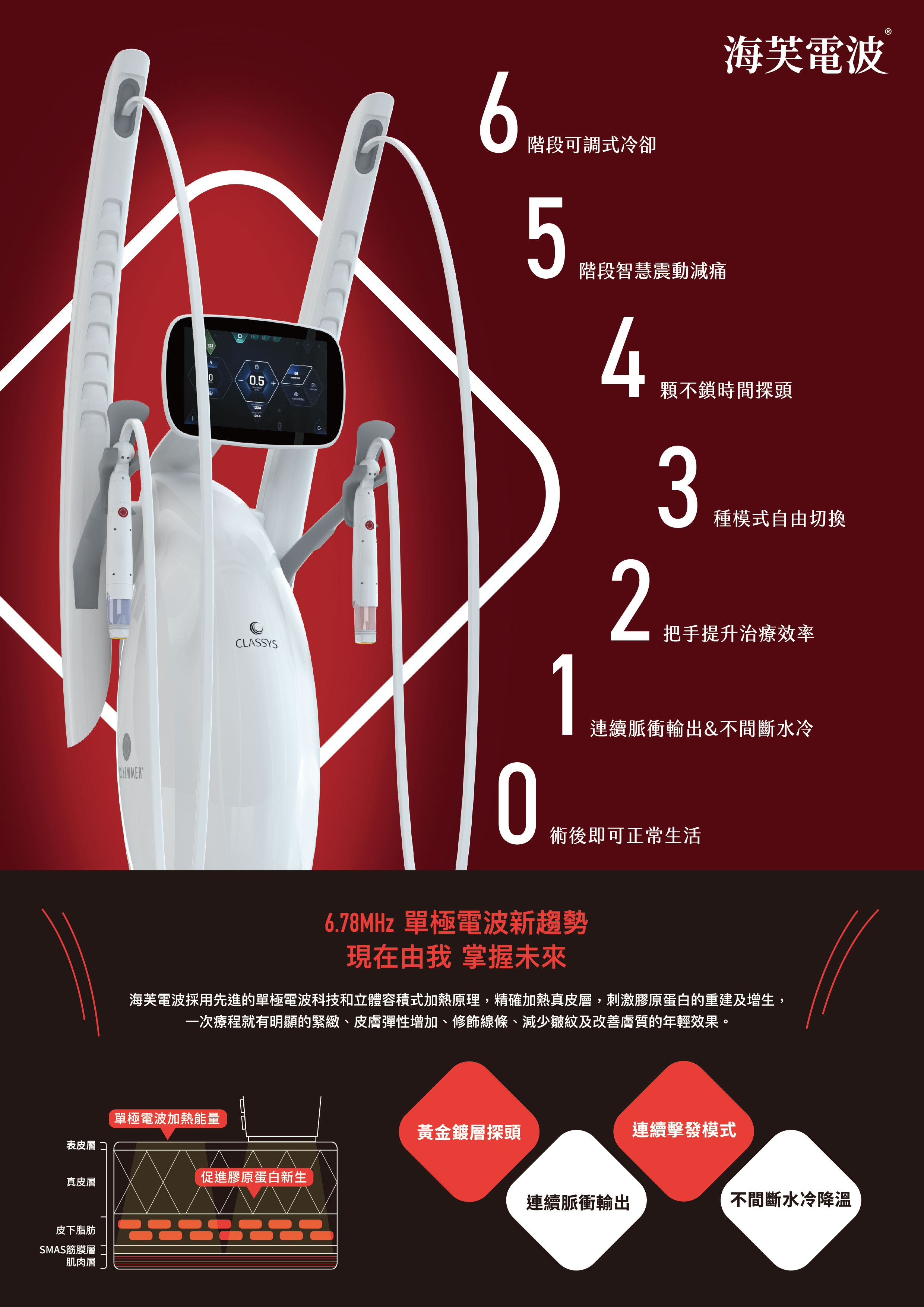 特色1:6.78MHz單擊電波促進膠原蛋白新生