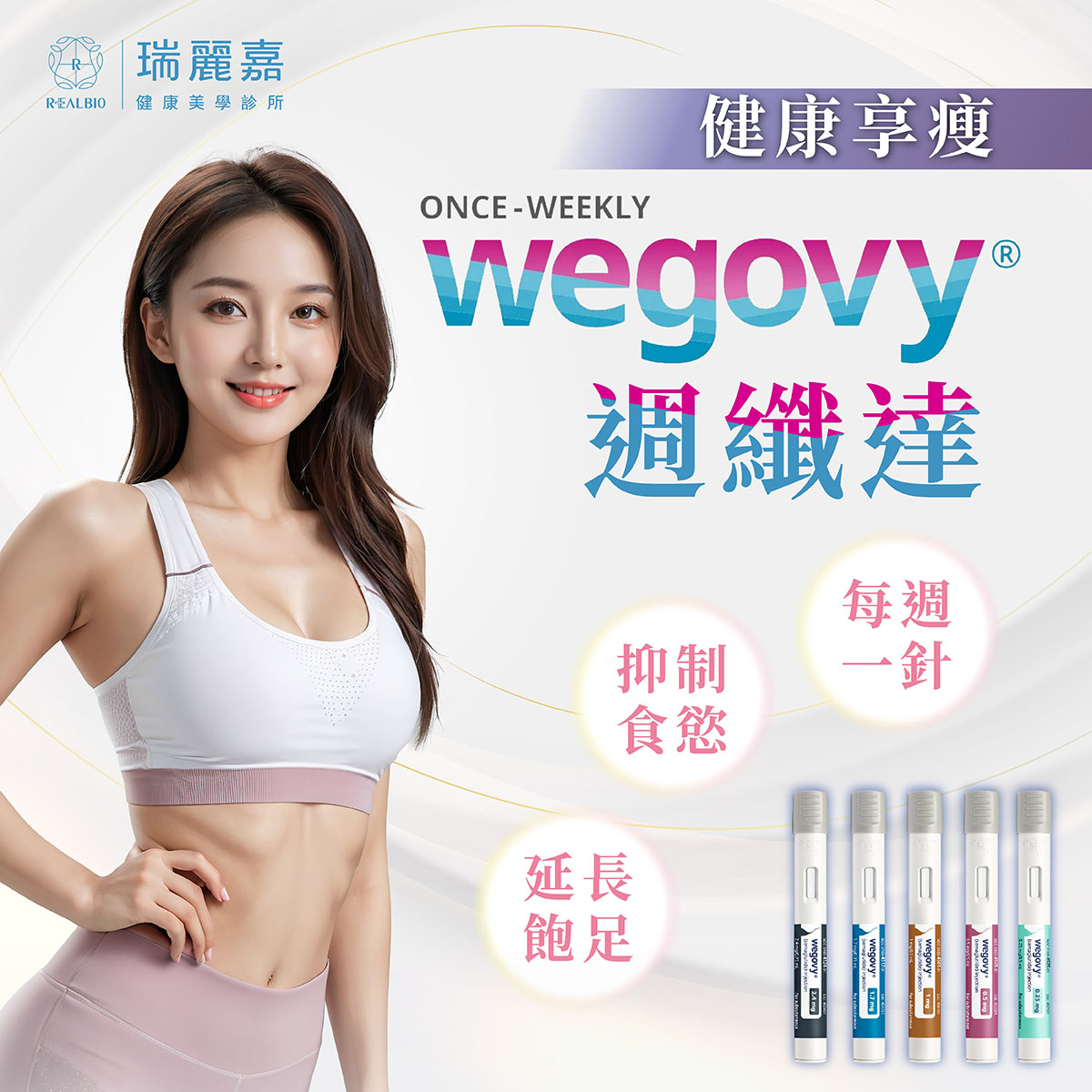在現今重視外貌與健康的社會中,肥胖已被視為一種慢性疾病。研究顯示,臺灣成年人過重或肥胖的比例已超過50%,且與超過200種併發症相關,包括糖尿病、心血管疾病、高血壓、高血脂等,這些問題不僅降低生活品質,還增加死亡風險。對許多患者而言,減重早已超越外觀的考量,成為健康管理的迫切需求。 瑞麗嘉引進了全球熱銷的「週纖達Wegovy」—新一代的瘦瘦筆。週纖達Wegovy 每週僅需注射一次,透過科學方式調控食慾與穩定血糖,為減重帶來革命性的突破。