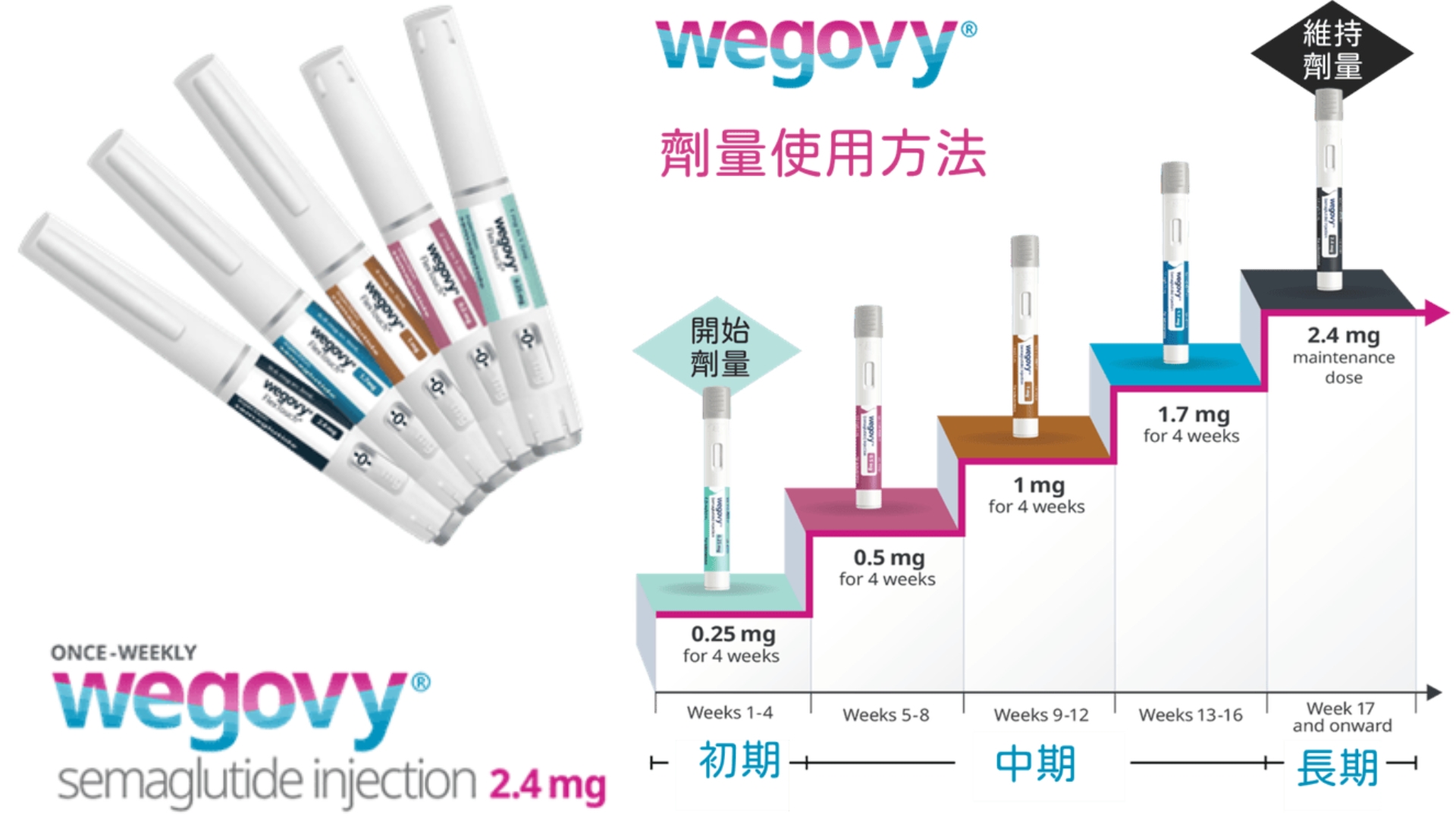 - 第17週起:維持劑量為2.4mg每週一次
